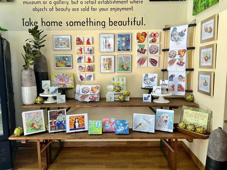 The original paintings are then converted to a final digital file that can be printed as giclee canvas, fine art paper, and dye-infused metals, and other substrates for collectors. Plus, gift items for everyone. Color and energy run through every painting. She brings inanimate objects to life with their shapes, colors, and textures.